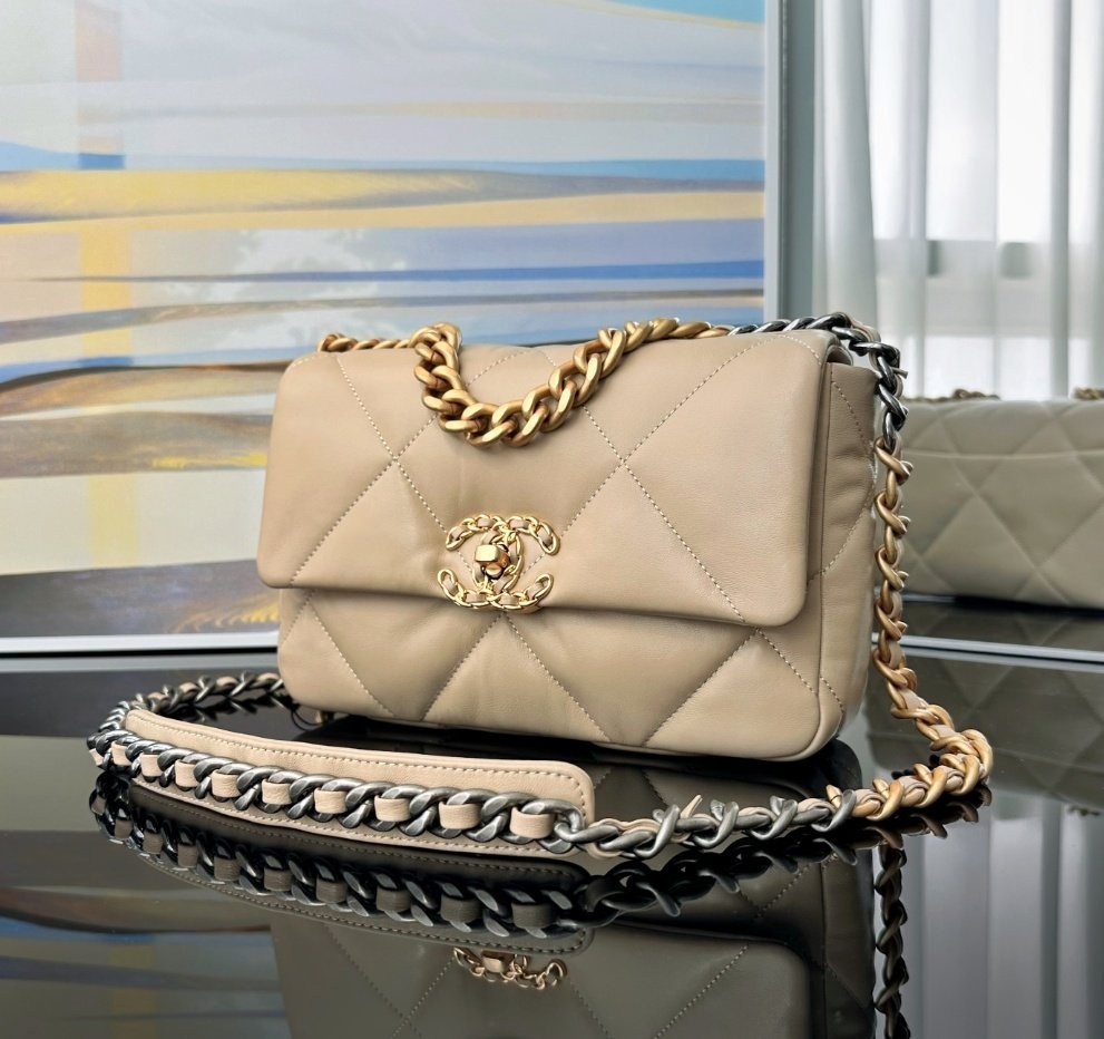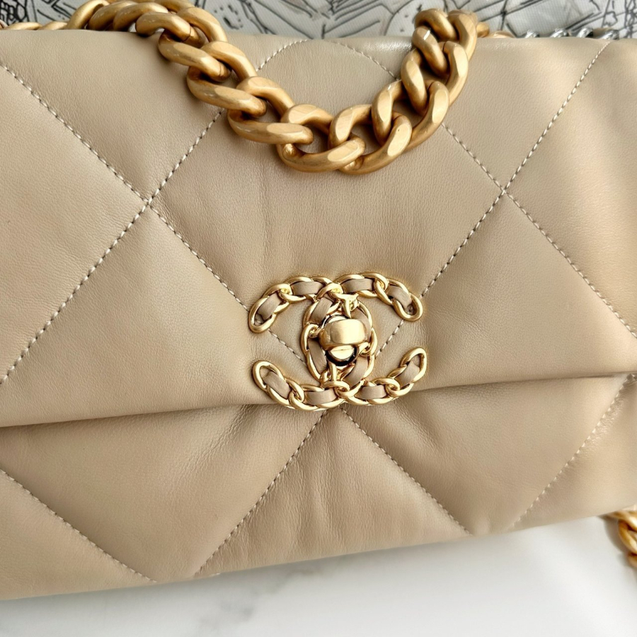 샤넬 19 플랩백 미듐 베이지 금장 AS1160