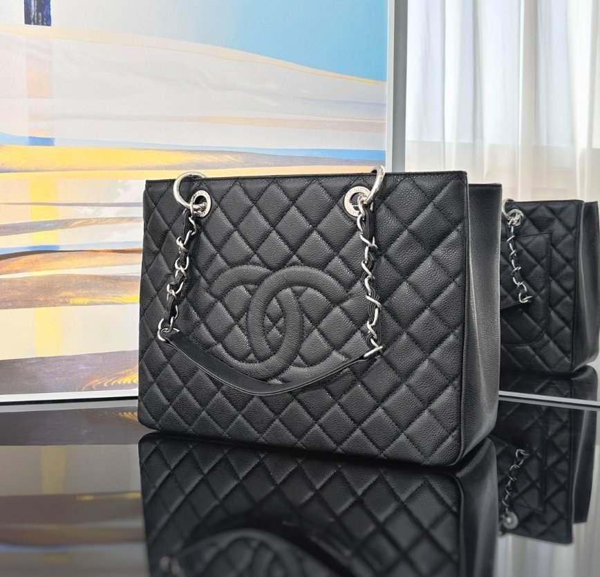 샤넬 그랜드샤핑 체인 숄더백 캐비어 블랙 은장 A90995